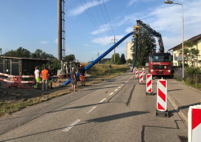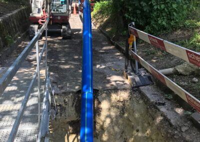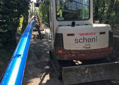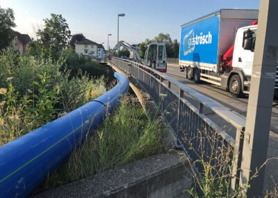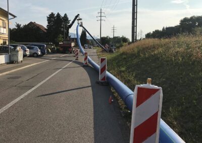 Bei der Wasser-Transportleitung vom Pumpwerk Eichholz zum Reservoir Oberholz wurden im Bereich der Emmenquerung Lecks festgestellt. Nach einer langen Planungs- und Ausschreibungsphase konnten wir die Bohrarbeiten Mitte Juni starten. Am 18. Juli 2019 wurde nach dem Erstellen der Bohrung die neue Polyethylenleitung DN 350 auf eindrücklicher Weise unter der Emme eingezogen. Die neue Transportleitung wird voraussichtlich gegen Ende Herbst 2019 in Betrieb genommen.