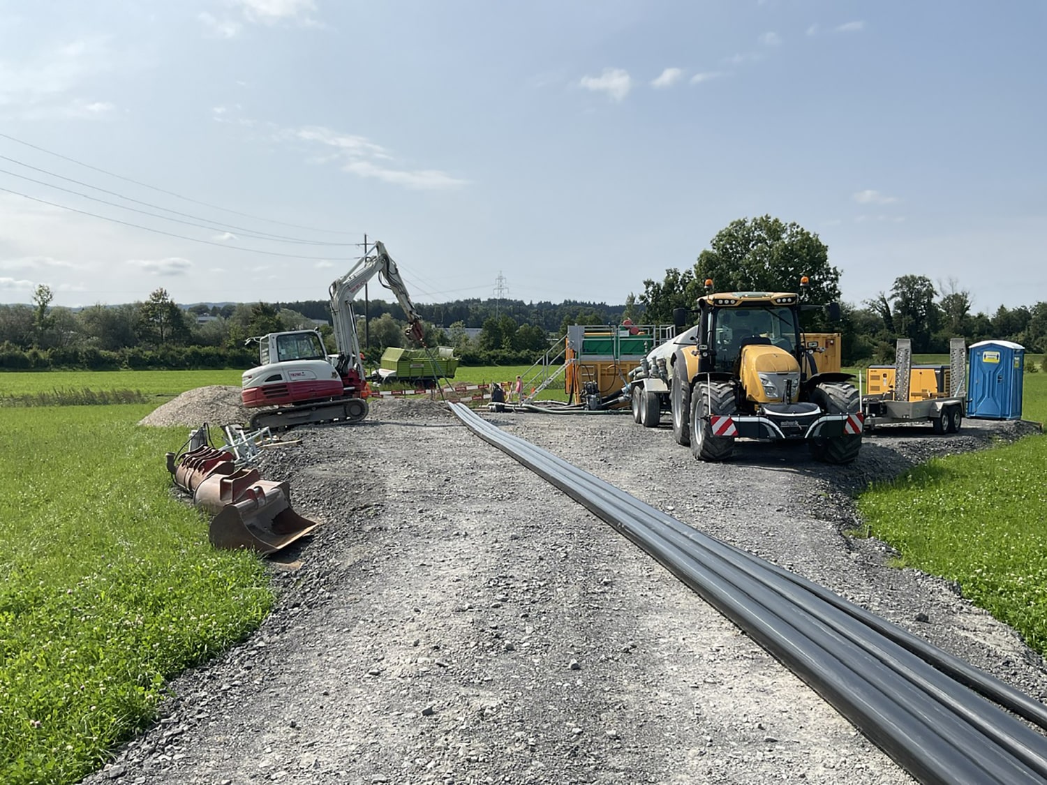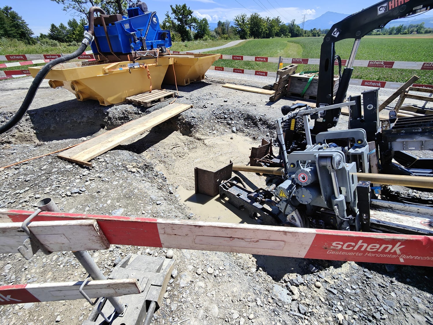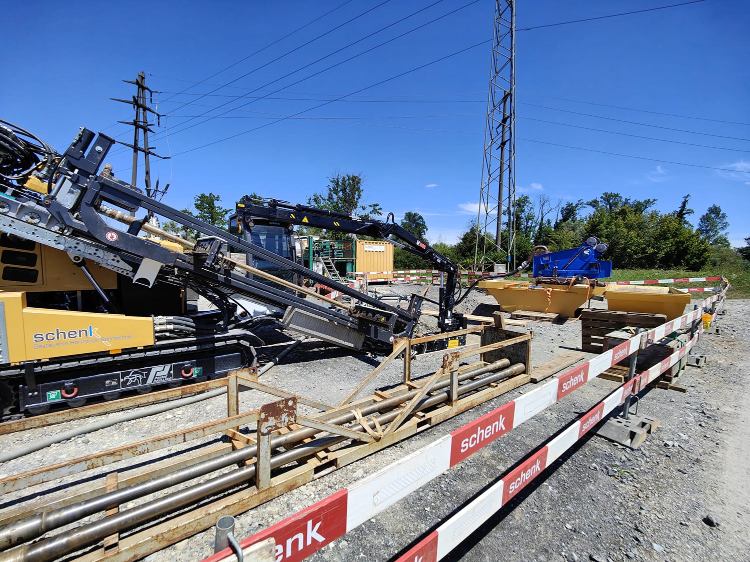 Im Rahmen der Spannungsumstellung von 50 auf 110 Kilovolt ersetzte die Axpo die bestehende Freileitung zwischen den Unterwerken Langacher und Sins durch eine neue Erdkabelleitung. Die Leitung verläuft durch die Gemeinden Cham, Hünenberg und Sins. Ein besonders anspruchsvoller Abschnitt war die Unterquerung der Reuss mittels Spülbohrung, ausgeführt durch die Schenk AG Heldswil. Diese Bohrung ermöglicht die Verbindung der neuen Kabeltrasse mit der bestehenden 110-kV-Leitung zum Unterwerk Sins der AEW.