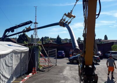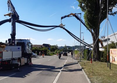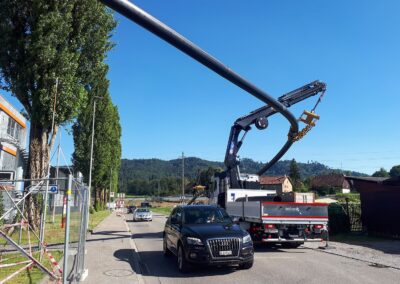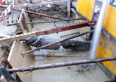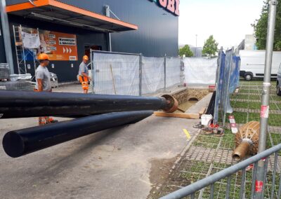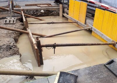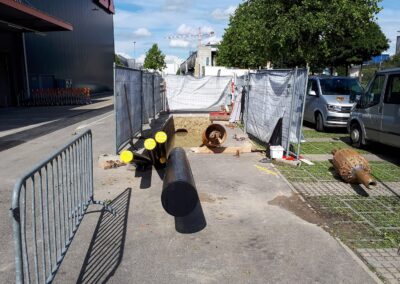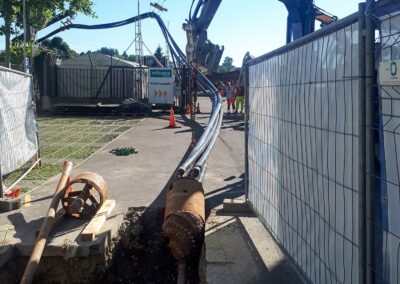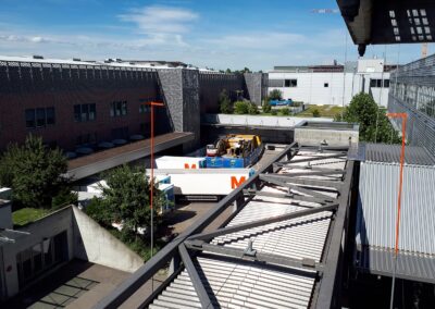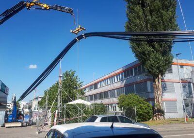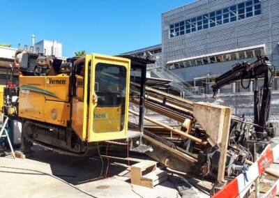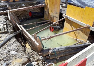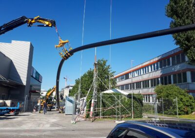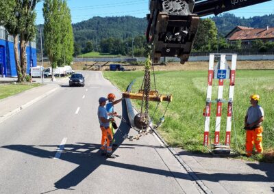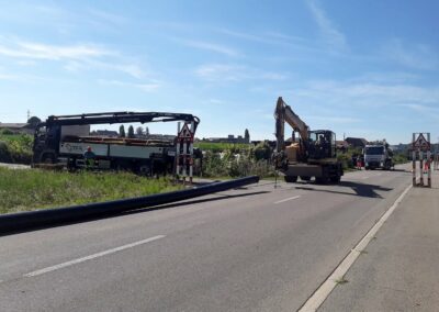 Die Migros Aare stiess in ihrem Verteilzentrum Schönbühl an Kapazitätsgrenzen. Insbesondere für die Kommissionierung gekühlter Produkte sowie die Retourenlogistik entstand zusätzlicher Platzbedarf. Zudem erreichten die bestehenden automatisierten Logistikanlagen ihr Lebensende. Für die Arealerschliessung unterquerten wir, am bestehenden Standort in Moosseedorf/Schönbühl, dreimal die Autobahn T6 für zwei Fernwärmeleitungen und ein Rohrbündel für EW- und IT-Leitungen.